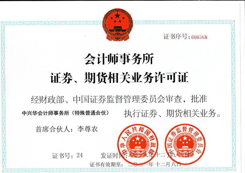 中兴华证券期货资质证书